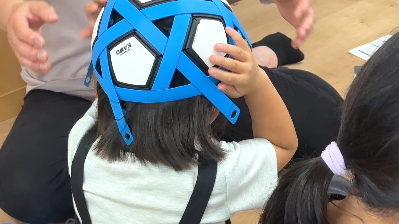 当日はサッカーショップKAMOの社員の方々とモルテン社員で現地へ訪問させていただき、MY FOOTBALL KITを自身で考えながら組み立ててもらい、その後は実際に組み立てたボールを使用して施設のグラウンドで簡単なボール遊びを行いました。