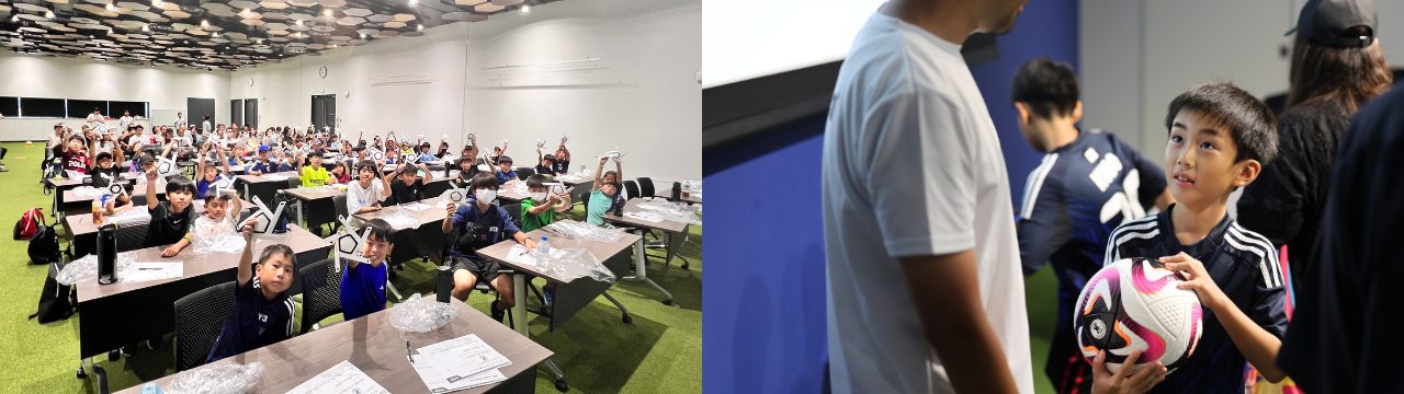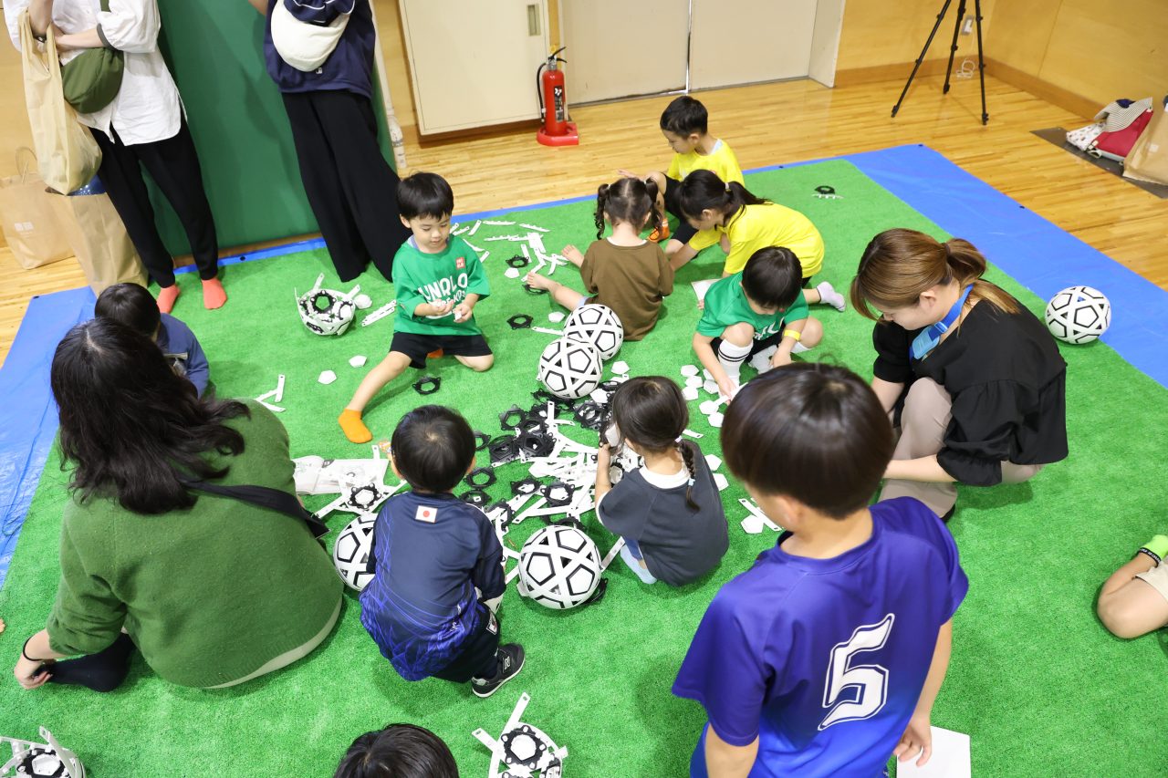 In July 2024, we held an event called “Summer Vacation Free Research 2024: SDGs through Soccer in JFA Dream Field” with the Japan Football Association (JFA).This year, a total of 190 people participated over the two days, learning about “The Secret of the Soccer Ball” and the SDGs.This is the ninth time the event has been held since it began in 2015.Using a portion of the event participation fee and the proceeds from the sale of “BALL KIT” we delivered about 50 “BALL KIT” assembled soccer balls, to children in Noto, Ishikawa Prefecture.