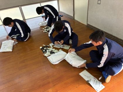 子どもたちは各々、取扱説明書を手に取り、試行錯誤し一生懸命、BALL KITを組み立てます。フューチャーズの選手たちも、掛かる時間は人それぞれでしたが、最後まで挫けず、作り上げてくれました。